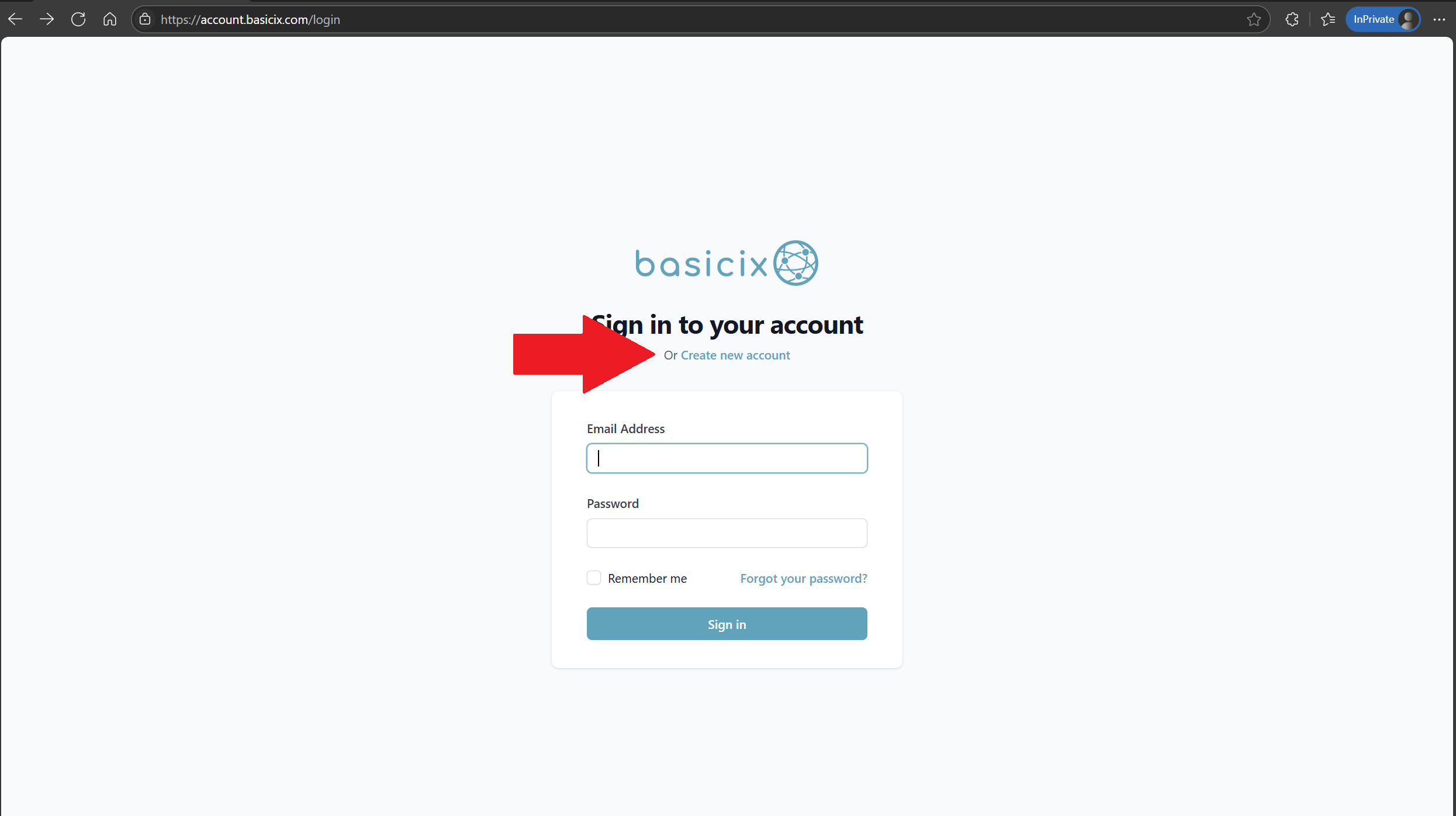 Navigate to https://account.basicix.com and click “Create new account” to sign up.